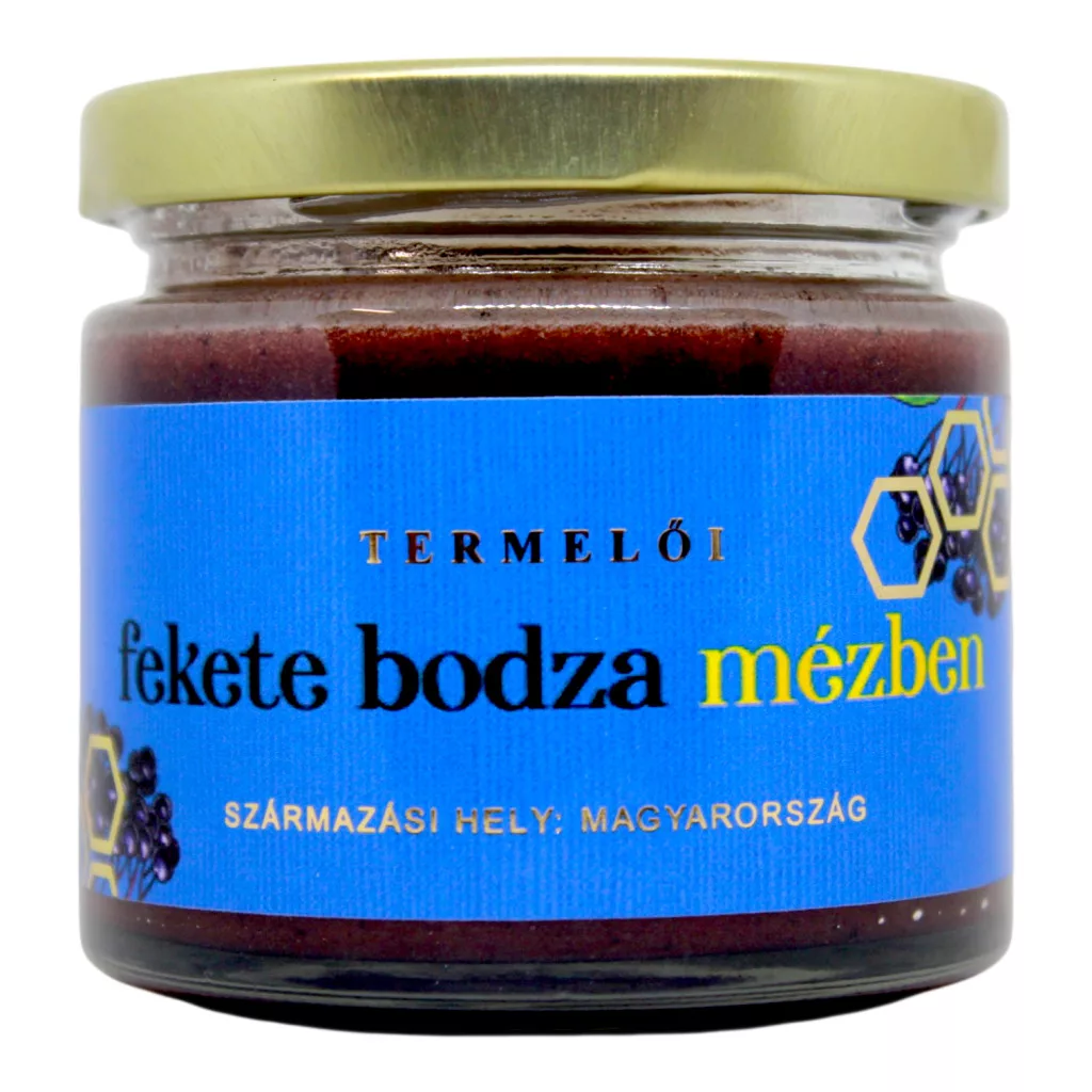 Összetevők: vegyes virágméz, szárított fekete bodza.
